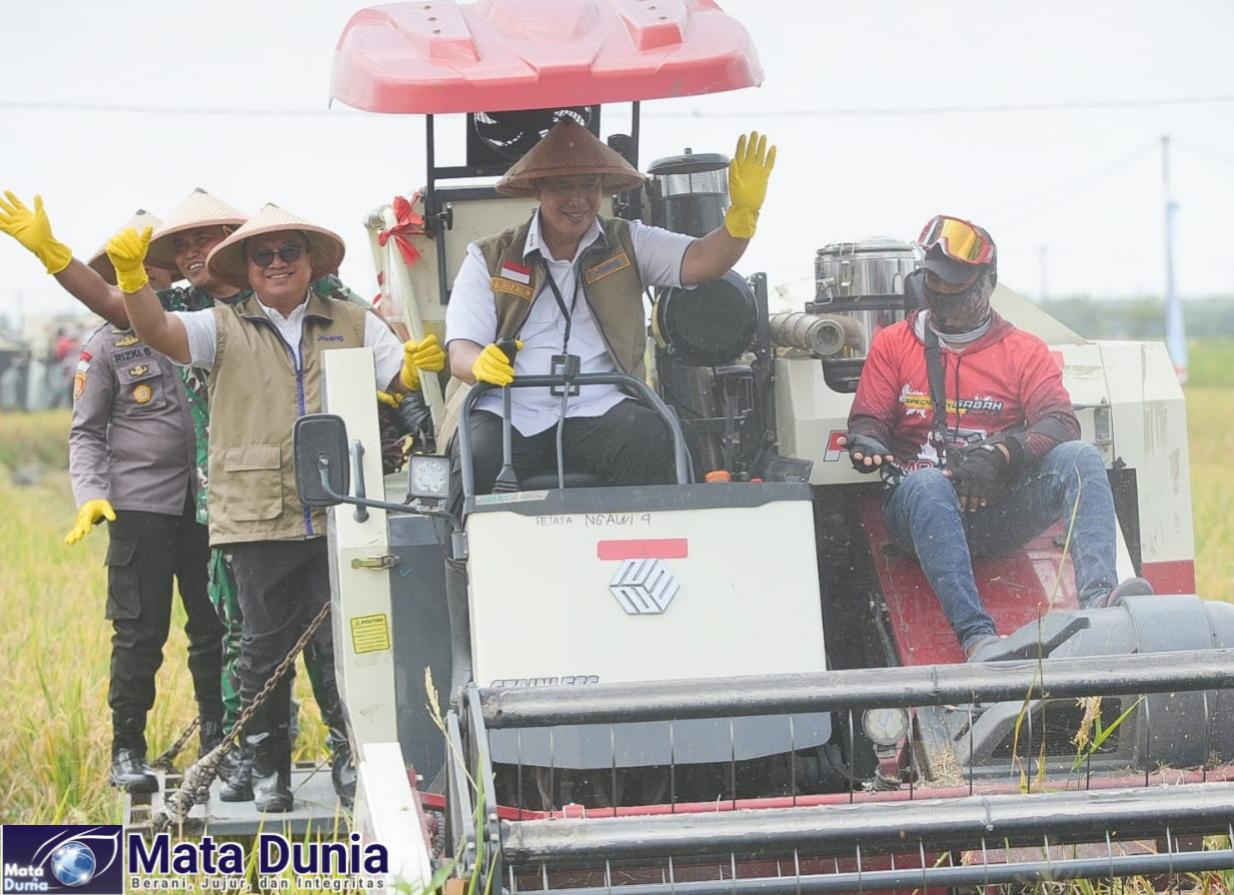 Kegiatan panen raya ini turut dihadiri oleh Wakil Bupati Ngawi, Dwi Rianto Jatmiko, jajaran BULOG, perwakilan Forkopimda, OPD terkait, serta para petani setempat yang menjadi bagian penting dalam rantai produksi pangan nasional.