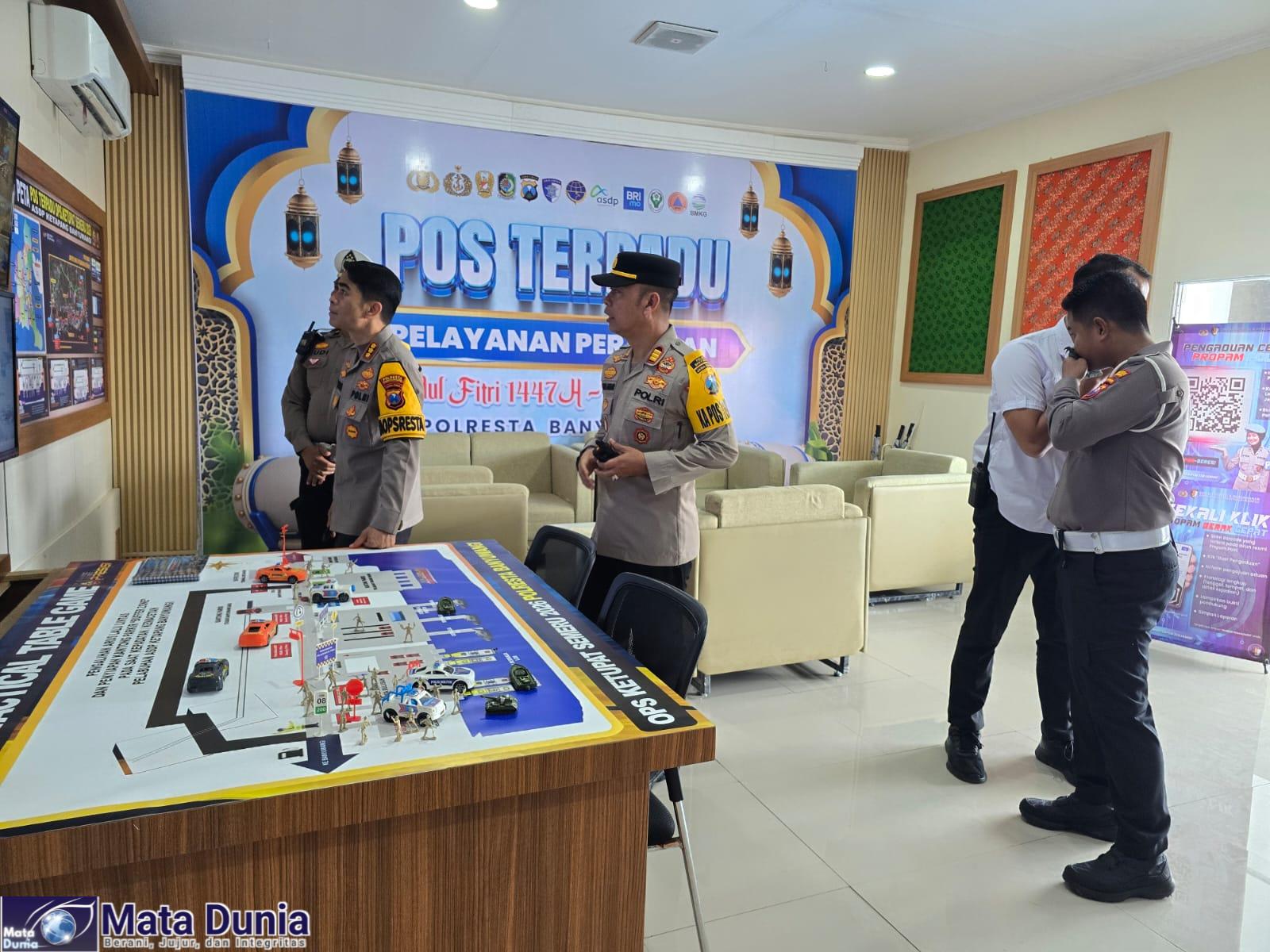 Banyuwangi Matadunia.co.id Kapolresta Banyuwangi, Kombes Pol Dr. Rofiq Ripto Himawan, S.I.K., S.H., M.H., melaksanakan pengecekan langsung ke Pos Pengamanan (Pos Pam) ASDP Ketapang pada Selasa (17/03/2026). Langkah ini dilakukan untuk memantau efektivitas pengamanan dan kelancaran arus lalu lintas kendaraan yang keluar masuk melalui pelabuhan penyeberangan tersebut.