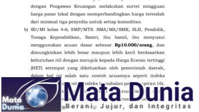 Sementara itu, pihak dapur juga menunjukkan sebagian dokumen petunjuk pelaksanaan (juknis) SPPG kepada wartawan sebagai acuan pelaksanaan program. Dalam cuplikan dokumen tersebut disebutkan bahwa belanja bahan baku untuk anak balita, PAUD, TK hingga SD kelas 1–3 menggunakan acuan dasar Rp8.000 per orang, sedangkan untuk SD kelas 4–6 hingga jenjang SMP dan SMA/SMK menggunakan acuan dasar Rp10.000 per orang.
