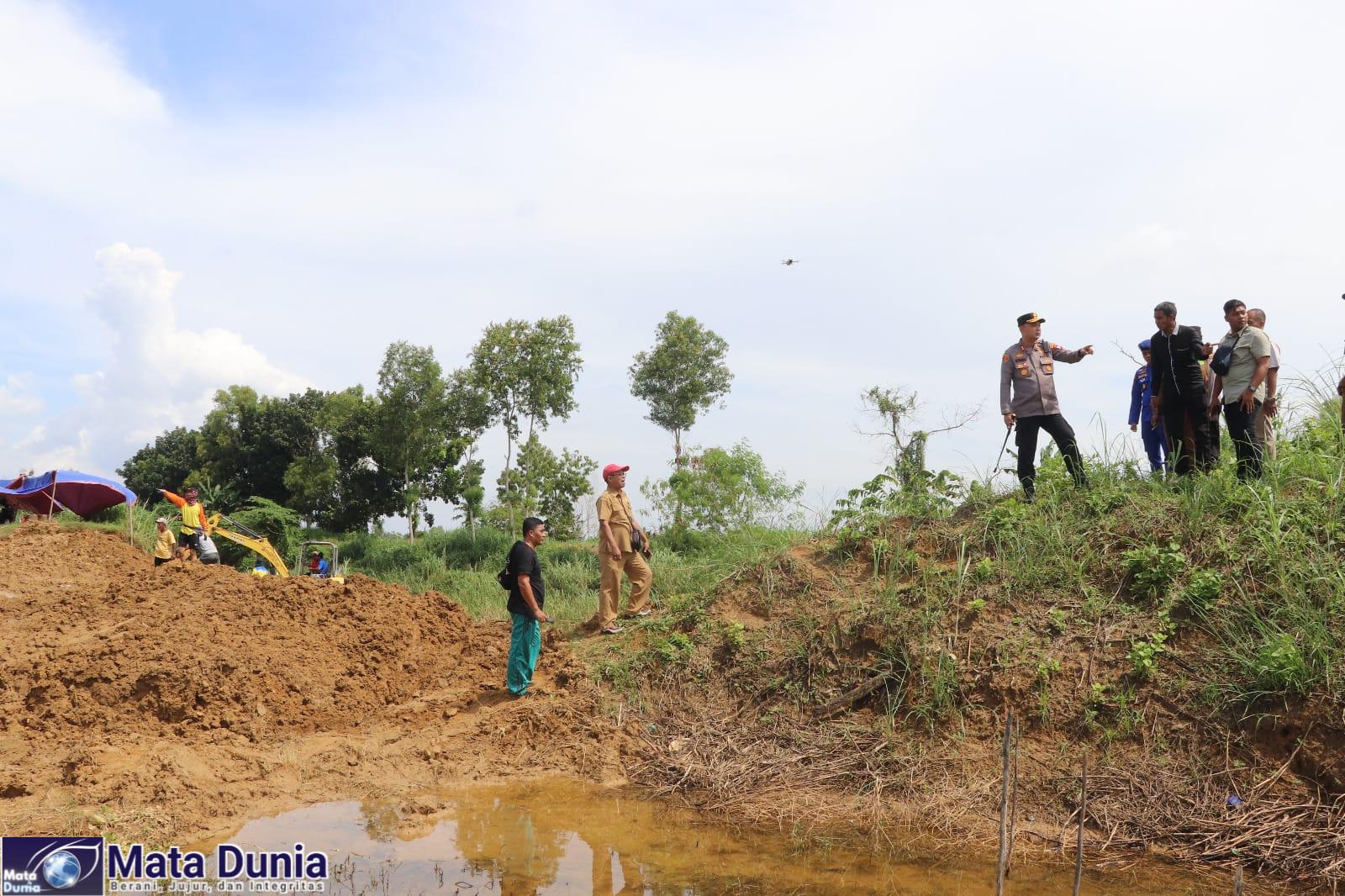 SUMENEP – Kapolres Sumenep, AKBP Rivanda, S.I.K., bersama jajaran melakukan peninjauan langsung ke lokasi tanggul sungai yang jebol di wilayah Desa Patean, Kecamatan Batuan, Kabupaten Sumenep.