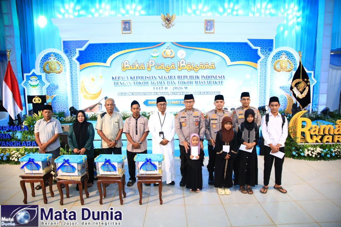 Jakarta Matadunia.co.id Polri menggelar kegiatan buka puasa bersama tokoh agama, tokoh masyarakat, serta warga sekitar di kawasan pembangunan SMA Kemala Taruna Bhayangkara, Gunung Sindur, Kabupaten Bogor, Kamis (5/3/2026).