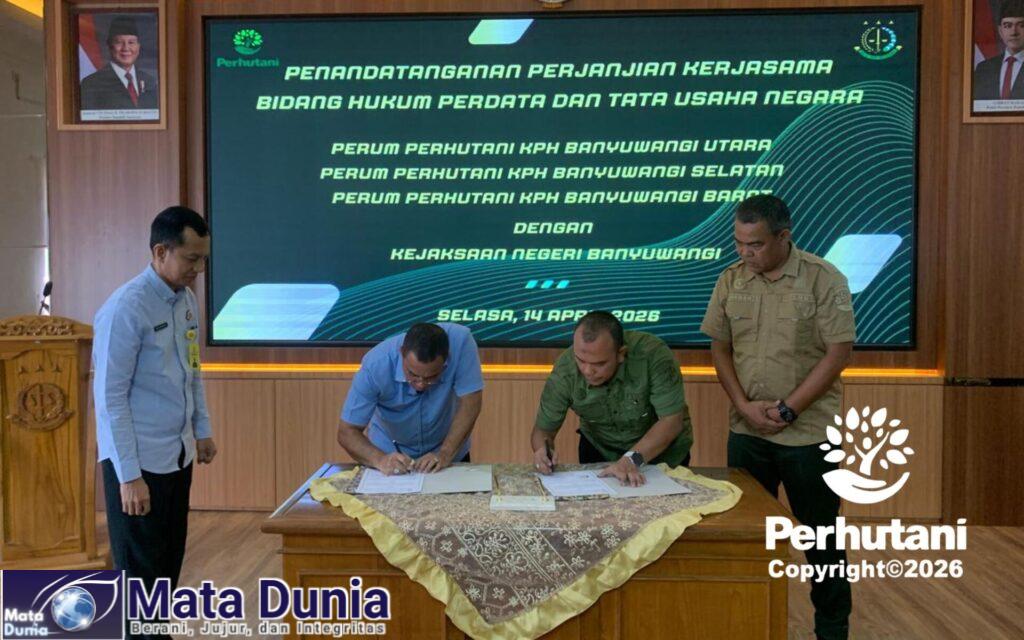 Penandatanganan dilakukan oleh Kepala Kejaksaan Negeri Banyuwangi bersama Administratur Perhutani KPH Banyuwangi Barat, Utara, dan Selatan sebagai upaya memperkuat dukungan hukum dalam pengelolaan kawasan hutan dan perlindungan aset negara.