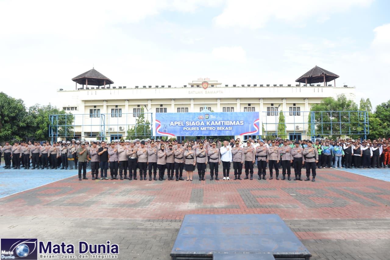 Bekasi – MATADUNIA.CO.ID//  Polres Metro Bekasi menggelar apel Kamtibmas yang dirangkaikan dengan simulasi kesiapan pengamanan melalui Sistem Pengamanan Markas Komando (SisPamMaKo) dan Sistem Pengamanan Kota (SisPamKota), di Lapangan Promoter Polres Metro Bekasi, Kamis (09/04/2026).