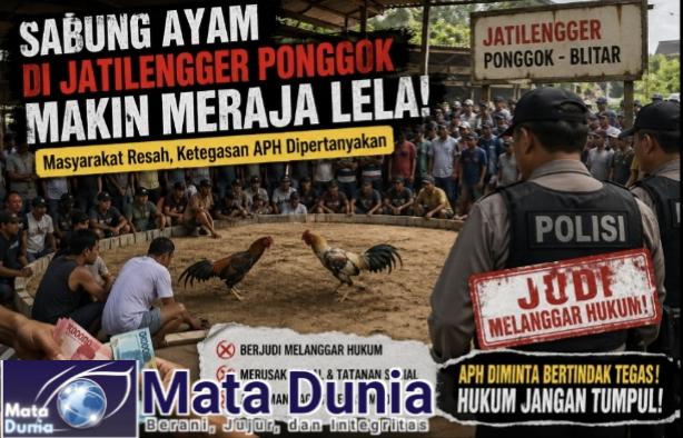 BLITAR – Praktik perjudian sabung ayam di wilayah Jatilengger, Desa Ponggok, Kabupaten Blitar, kian merajalela dan memicu keresahan di tengah masyarakat. Aktivitas yang berlangsung secara terbuka dan diduga terorganisir ini seakan berjalan tanpa hambatan, memunculkan pertanyaan besar terhadap ketegasan aparat penegak hukum (APH) dalam menindak pelanggaran yang jelas-jelas melawan hukum tersebut.
